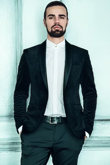 Czarny garnitur aksamitny wybierają panowie, którzy chcą wyglądać bardzo elegancko, ale nie „zwyczajnie”.