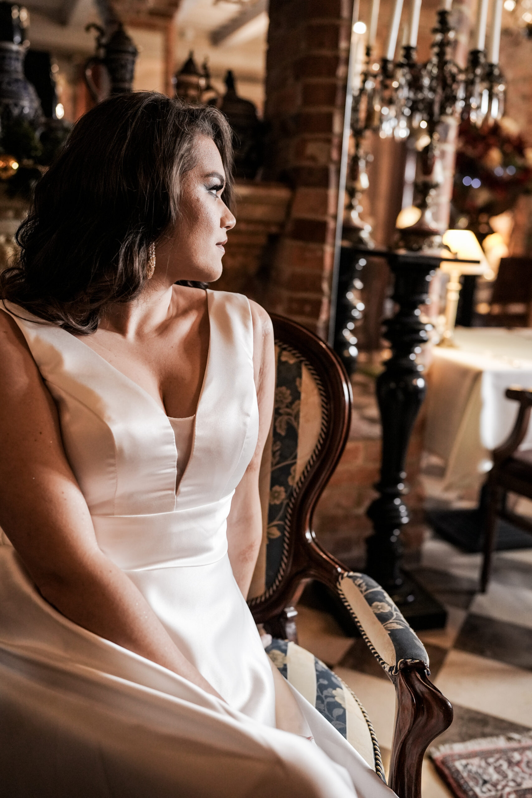 Suknia ślubna Margaret z kolekcji De Novia Atelier to połączenie eleganckiego minimalizmu i ponadczasowego szyku. Wykonana z wysokogatunkowej satyny, olśniewa subtelnym połyskiem i idealnie układa się na sylwetce. To propozycja dla panien młodych, które marzą o kreacji w stylu klasycznym, ale z nutą luksusu.