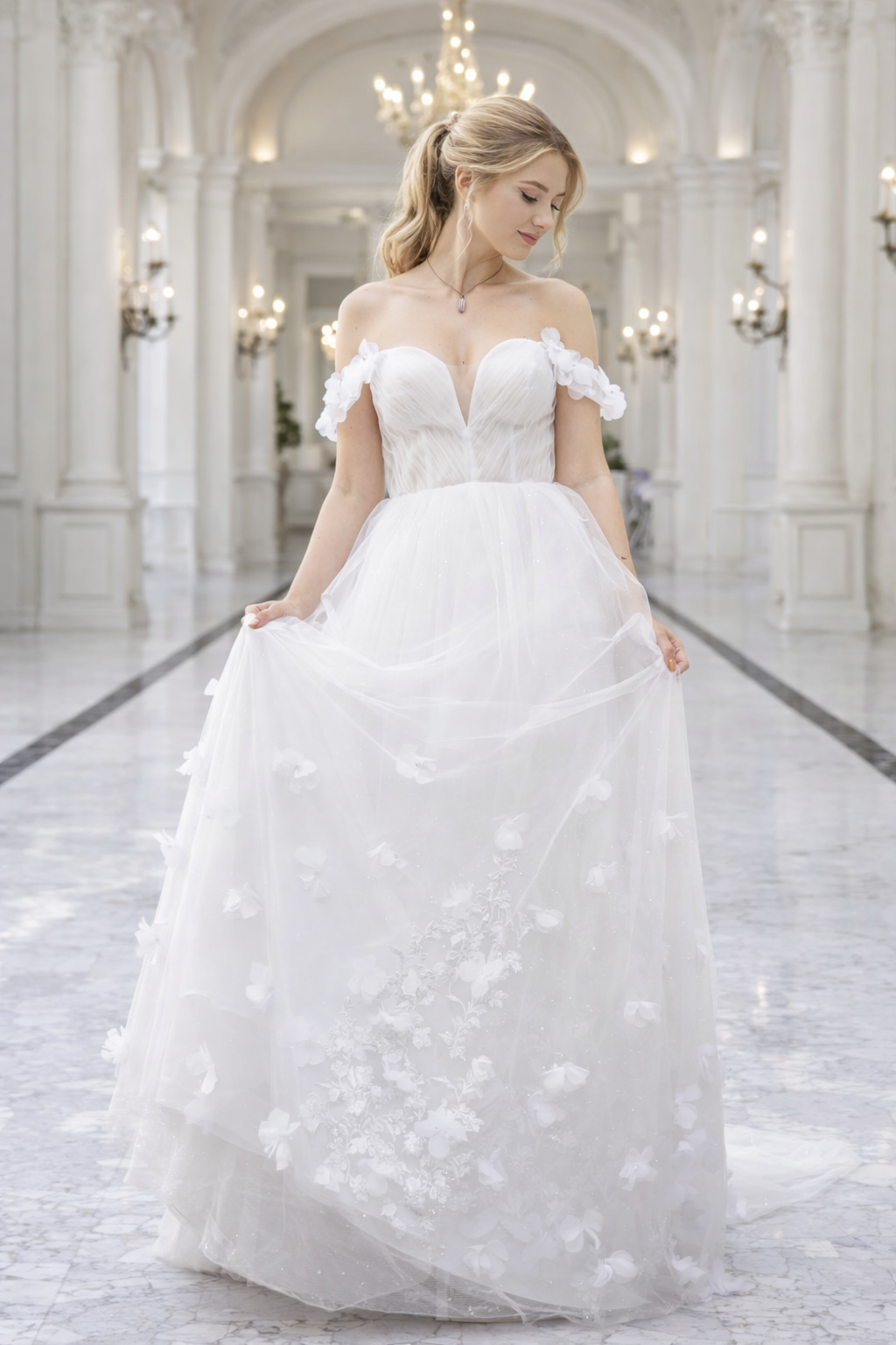 Suknia ślubna Orchidea – lekkość tiulu i romantyczne kwiaty 3D